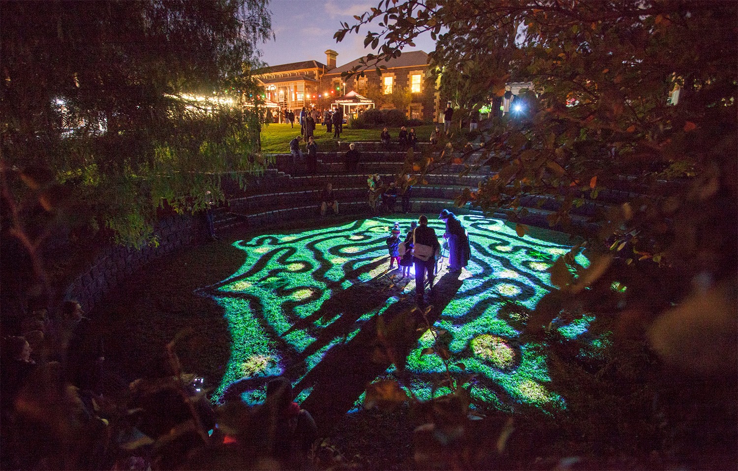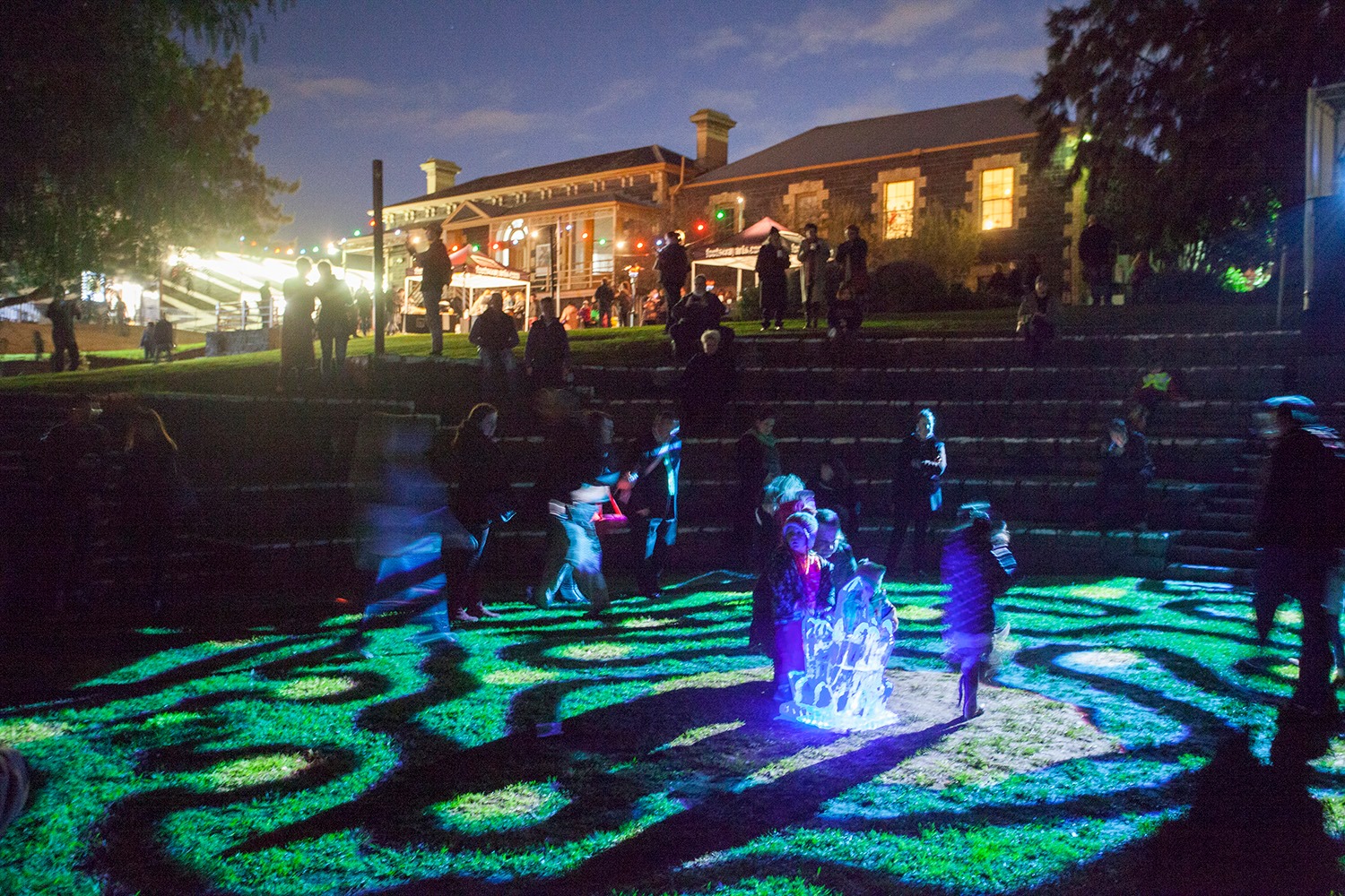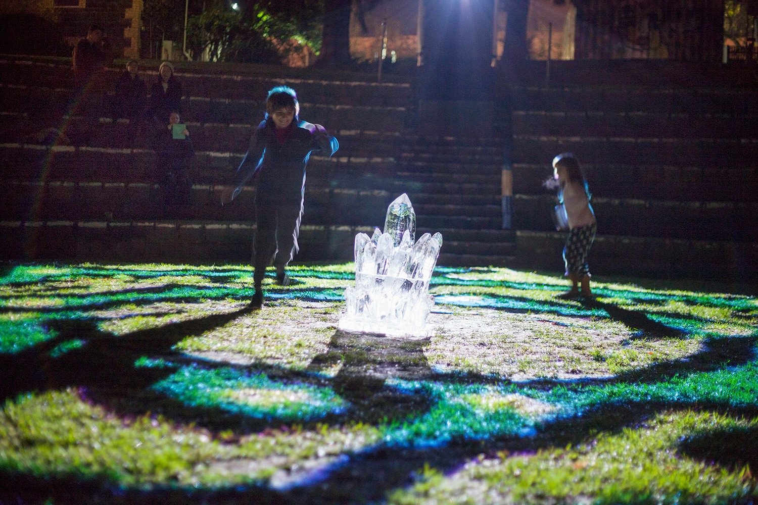 Through animation and video projection, the labyrinth fill the Footscray Community Art Centre’s Amphitheatre with an interactive installation with a centre piece of a huge ice sculpture designed by lead artist Teagen C.